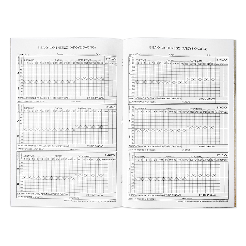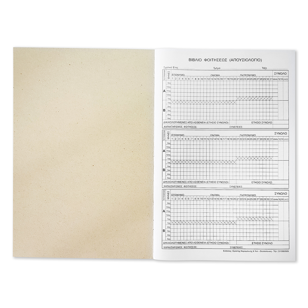 Βιβλίο Φοίτησης Τετράμηνα 21×29 10 φύλλα Πράσινο (Απουσιολόγιο)