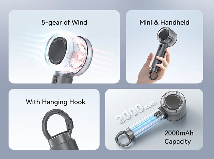 Μίνι φορητοί ανεμιστήρες της Usams με 5 επίπεδα ταχύτητας, που σας επιτρέπουν την προσαρμογή της ροής της ταχύτητας του αέρα ανάλογα με τις ανάγκες σας