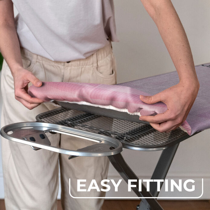 Η τεχνολογία Quick Fix της Vileda, με τις ελαστικές γωνίες, καθιστά την τοποθέτηση του σιδερόπανου πολύ πιο εύκολη και αποτρέπει το κάλυμμα από το να βγαίνει εύκολα, όπως συμβαίνει με άλλα προϊόντα